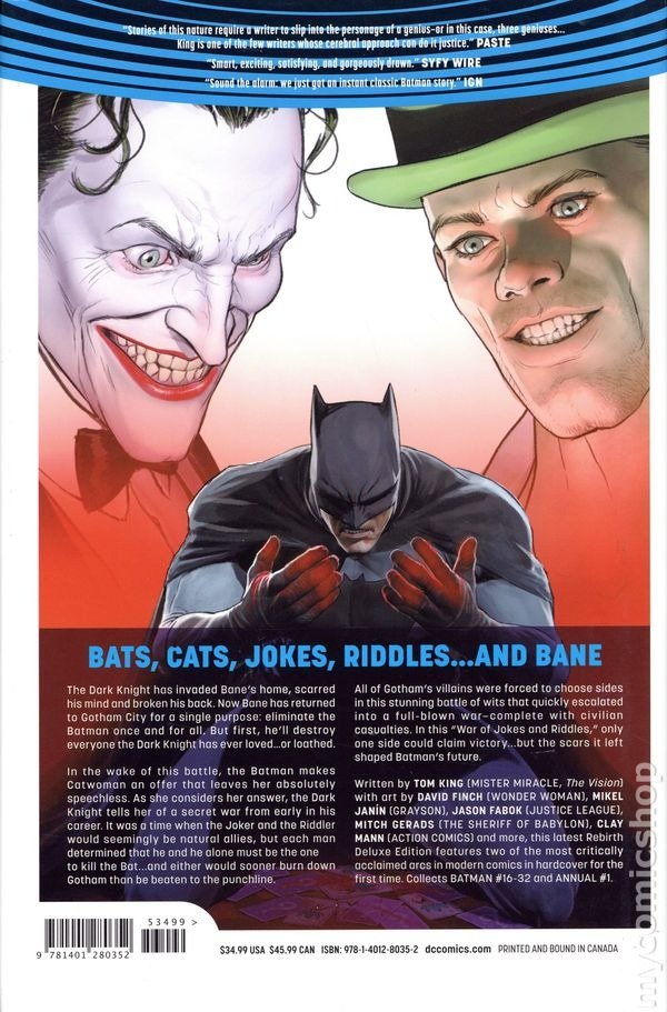 This epic hardcover includes the events of "The Button," in which Batman and the Flash unite to explore the mystery behind a certain bloodstained smiley-face button. And The Joker and the Riddler go to war in the streets of Gotham City while the romance between Batman and Catwoman heats up!