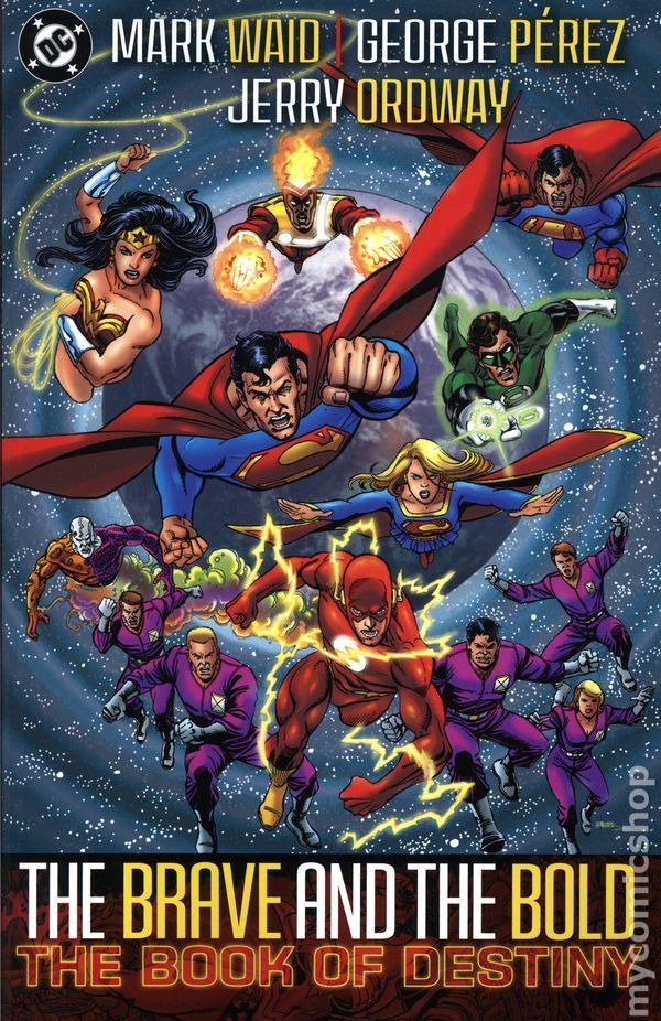 2nd Edition - Volume 2 - 1st printing. "The Book of Destiny!" Collects The Brave and the Bold (2007 3rd Series) #7-12. Written by Mark Waid. Art by George Pérez, Jerry Ordway, Bob Wiacek, and Scott Koblish. Cover by George Pérez. Superman. Wonder Woman. The Flash. Power Girl. The Doom Patrol. Hawkman. Aquaman. The Teen Titans. They're among the mightiest beings who have ever lived. Together, they are a force that can vanquish any known threat to the universe--But what about the unknown? When a mysterious being called Megistus travels between centuries to steal objects and abduct people, it'll take all of DC's heroes and the Challengers of the Unknown, who possess the Book of Destiny, to thwart this evil threat! Softcover, 160 pages, full color. Rated T Cover price $17.99.
